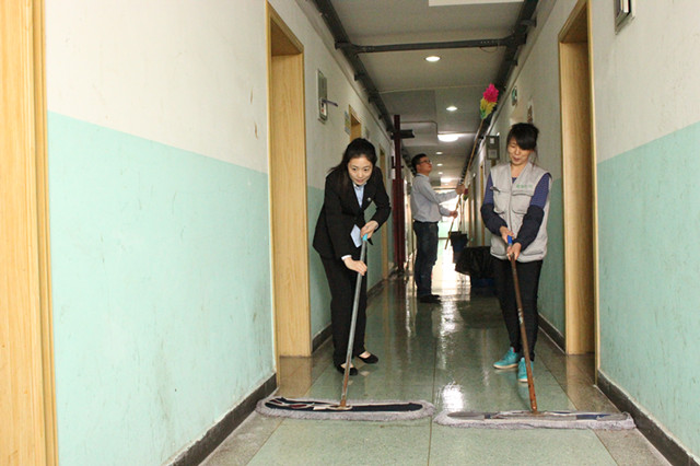 本次活動,團員青年分成兩組,攜帶掃把、拖把等清潔工具,采取分組包干的方式分別對公舍4號樓樓道、衛(wèi)生間等進行清潔。打掃過程中,大家發(fā)揚不怕臟、不怕苦、不怕累的精神,努力為改善宿舍環(huán)境出份力,通過大家共同奮戰(zhàn),宿舍面貌煥然一新。