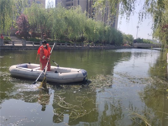 公司根據(jù)各河道水草生長(zhǎng)情況,采用“先割后清”、“分段切割,集中打撈”的方法進(jìn)行推進(jìn)式作業(yè),每天組織近30名人員分切割、打撈和清運(yùn)三個(gè)小組集中開展水清打撈清運(yùn)作業(yè),截止目前,園區(qū)利民河、富民河、十支河、民便河水草已全面清理結(jié)束,蔡莊大溝水計(jì)4月底前全面清撈到位,重現(xiàn)園區(qū)“碧波潺潺、河暢水美”的河道景觀。
