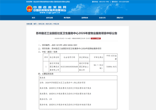 近日,建發(fā)公司成功中標蘇州宿遷工業(yè)園區(qū)社區(qū)衛(wèi)生服務中心2026年度物業(yè)服務項目。