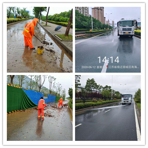 雨停后,各條線人員仍加班加點(diǎn)做好雨后清理工作,及時(shí)沖洗道路、扶正倒伏苗木,確保各轄區(qū)內(nèi)道路正常通行。