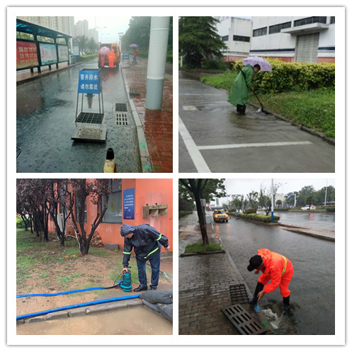為了保障園區(qū)群眾生命財(cái)產(chǎn)安全及道路安全通暢,建發(fā)公司迅速啟動(dòng)防汛應(yīng)急預(yù)案,組織各條線主動(dòng)出擊,市政維護(hù)300余人,12臺(tái)車(chē)輛在最短時(shí)間內(nèi)集結(jié)到位,全體人員頂風(fēng)冒雨,奔赴一線,在道路關(guān)鍵排水設(shè)施附近設(shè)置警示標(biāo)志,用鐵鉤、鐵锨等清理井篦阻水物,必要時(shí)徒手清理。在低洼易積水路段打開(kāi)井蓋板,加速周邊路面雨水排放,防止路面積水,時(shí)刻保障園區(qū)道路暢通。同時(shí)啟動(dòng)強(qiáng)排水設(shè)備,保持水位在18.5米,切實(shí)做好安全水位運(yùn)行。全面開(kāi)展物業(yè)各轄區(qū)低洼區(qū)域巡查,及時(shí)清理樹(shù)木、石塊等影響安全通行的路障,清理下水道口排放,及時(shí)處置各類雨情。