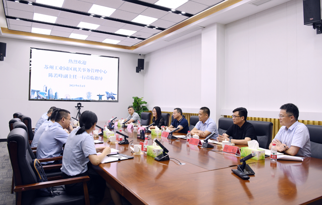 8月4日下午,蘇州工業(yè)園區(qū)機關事務管理中心陳若峰副主任一行到建發(fā)公司調(diào)研。園區(qū)黨工委委員、管委會副主任張漢華出席座談會,城發(fā)公司、建發(fā)公司管理層陪同調(diào)研、座談。